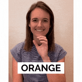 ORANGE is signed by starting with the C handshape at the bottom of your chin, and closing it twice into the S handshape (otherwise known as a fist). It’s basically the sign for MILK, but at your chin!