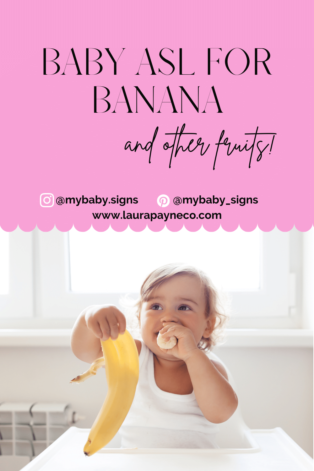 Many parents love to use sign language during meals with their babies and toddlers. Signs that are common to use are MORE, EAT, and ALL DONE. These signs are wonderful to use with your baby to begin that early communication and lessen frustrations that arise during the meal. However, I also recommend extending that vocabulary to include ASL signs for foods, too. (I’ll explain more on that in a moment.) Learning the ASL signs for different fruits is a great place to start!